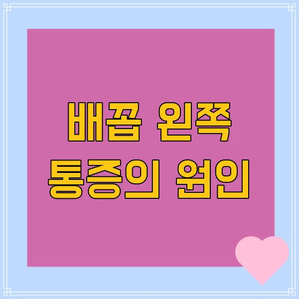 안녕하세요! 혹시 배꼽 왼쪽 이 콕콕 쑤시거나 묵직한 통증 을 느껴본 적 있으신가요? 저도 가끔 그런 경험이 있는데, 은근히 신경 쓰이고 걱정되더라고요. 그래서 오늘은 우리 함께 ' 배꼽 왼쪽 통증 '에 대해 자세히 알아보는 시간을 가져보려고 해요. 왼쪽 아랫배 통증 이 발생하는 이유는 생각보다 다양하답니다. 단순한 소화 불량일 수도 있지만, 때로는 다른 질환의 신호 일 수도 있기 때문에 원인과 증상을 제대로 파악하는 게 중요 해요. 지금부터 배꼽 왼쪽 통증의 원인 과 통증의 종류 , 그리고 자가 진단 및 대처법 까지! 함께 차근차근 알아가 볼까요? 혹시 병원 진료가 필요한 경우는 어떤 경우인지도 살펴보면 더욱 좋겠죠? 자, 그럼 시작해 볼게요!